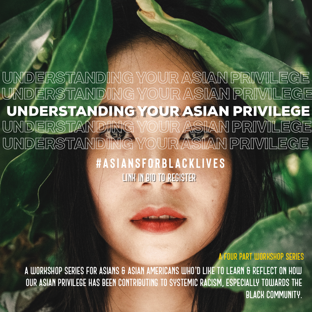 This workshop series is for those who identify as Asians or Asian Americans looking for community and group support to have deeper conversations around social justice. We’ll examine why the Asian & Asian American community has been quiet around social justice issues, learn, and reflect on how our Asian privilege has been contributing to systemic racism, especially towards the Black community.